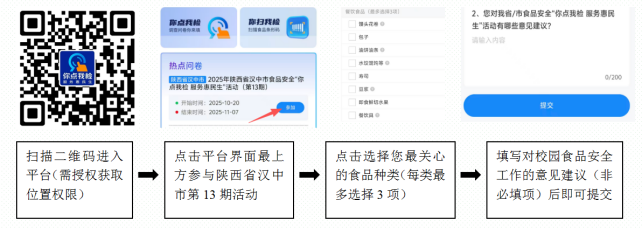 –––––––––––––––––––––––––––––––––––––––––––––“一饭膏粱,诚挚邀请全市泛博师生及家长,通过陕西省市场监管局“你点我检办事平易近生”平台,